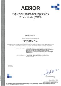 Certificado AENOR de Esquema Europeo de Ecogestión y Ecoauditoría (EMAS) para INTEMAN laboratorios